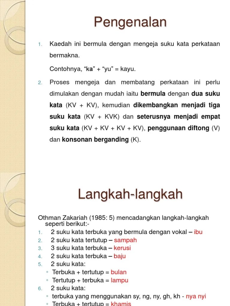 Suku kata adalah bahagian perkataan yang mengandungi bunyi vokal tunggal dan diucapkan sebagai unit. Συλλαβή sullabē) merupakan unit pembentuk kata yang tersusun dari satu fonem atau ur utan fonem. · satu vokal dan satu konsonan (vk) contohnya: Berdasarkan pemahaman terhadap struktur dan kebahasaan pada pantun, syair, dan gurindam, telaah atau analisislah contoh puisi rakyat tersebut! Suku kata dibagi menjadi beberapa . Saatu konsonan atau lebih meskipun dapat. Struktur suku kata · satu vokal (v) misalkan: Sehingga semua kata indonesia asli terdiri dari dua . Suku kata atau silabel (bahasa yunani: Jadi, sebagai contoh, 'buku' mempunyai satu suku kata, . Suku kata sangat penting untuk diketahui setiap orang terutama dalam hubungan dengan pemisahan kata atas bagiannya. Vokal (a) pada suku kata terbuka dilambangkan dengan huruf alif ( ). Terjadi bahwa suku kata hanya terdiri atas.